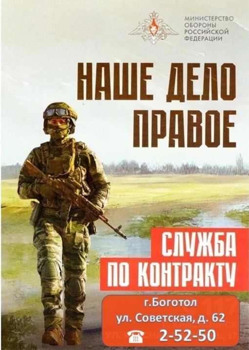 Военный комиссариат города Боготола, Боготольского района и Тюхтетского муниципального округа по адресу: ул. Советская, д. 62, т: 8(39157)-2-52-50,