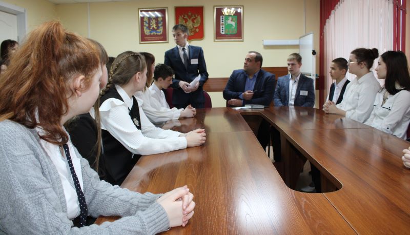 Утро старшеклассники начали с совещания, на котором вместе с исполняющим полномочия Главы округа Михаилом Поддубковым и руководителями отделов и муниципальных учреждений планировали жизнь округа на ближайшее будущее.