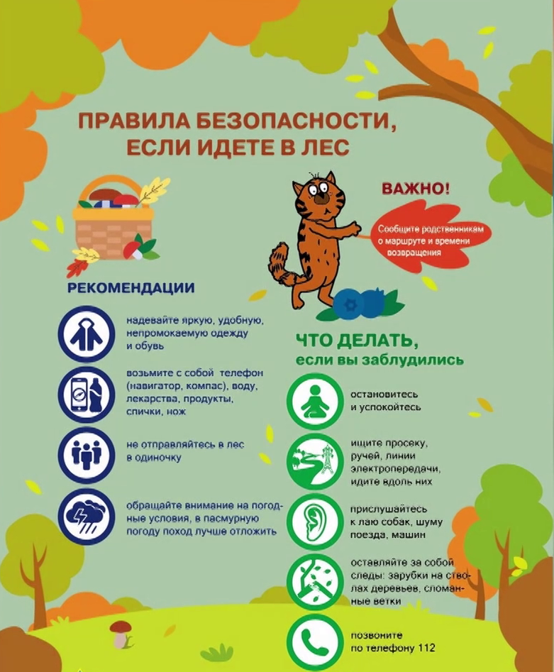 - Сообщайте кому-то о своих планах. Перед тем как уйти в лес, дайте знать близким, куда вы направляетесь и когда планируете вернуться.