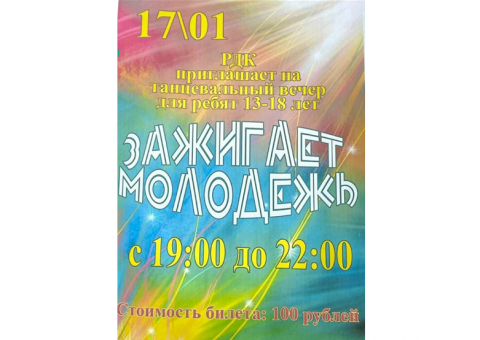 Туруханский районный Дом культуры приглашает ребят 13 - 18 лет на танцевальный вечер «Зажигает молодежь»