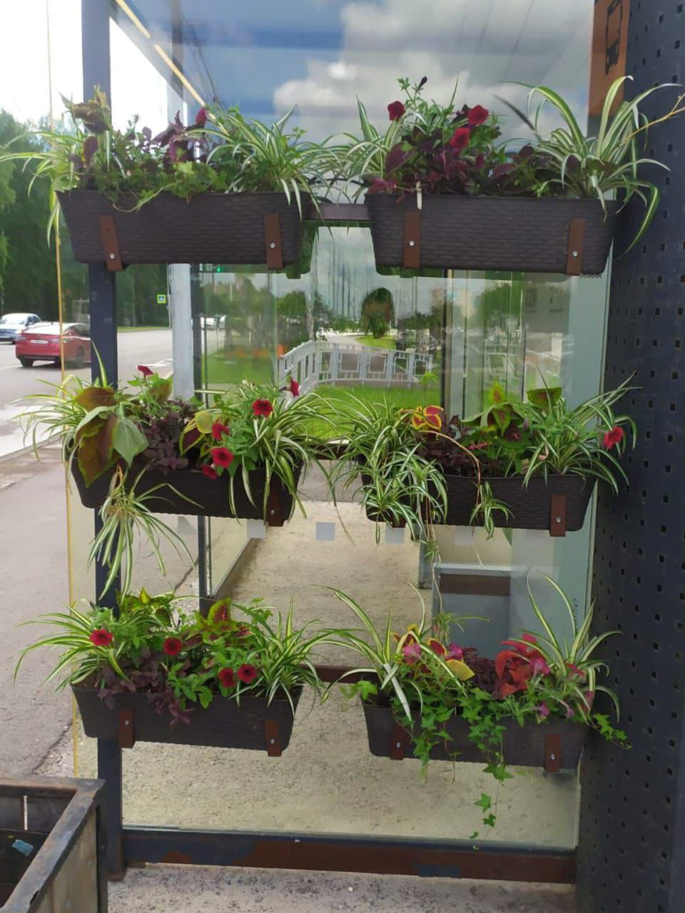 В Красноярске на нескольких остановках общественного транспорта появились кашпо с цветами. Это эксперимент мэрии.