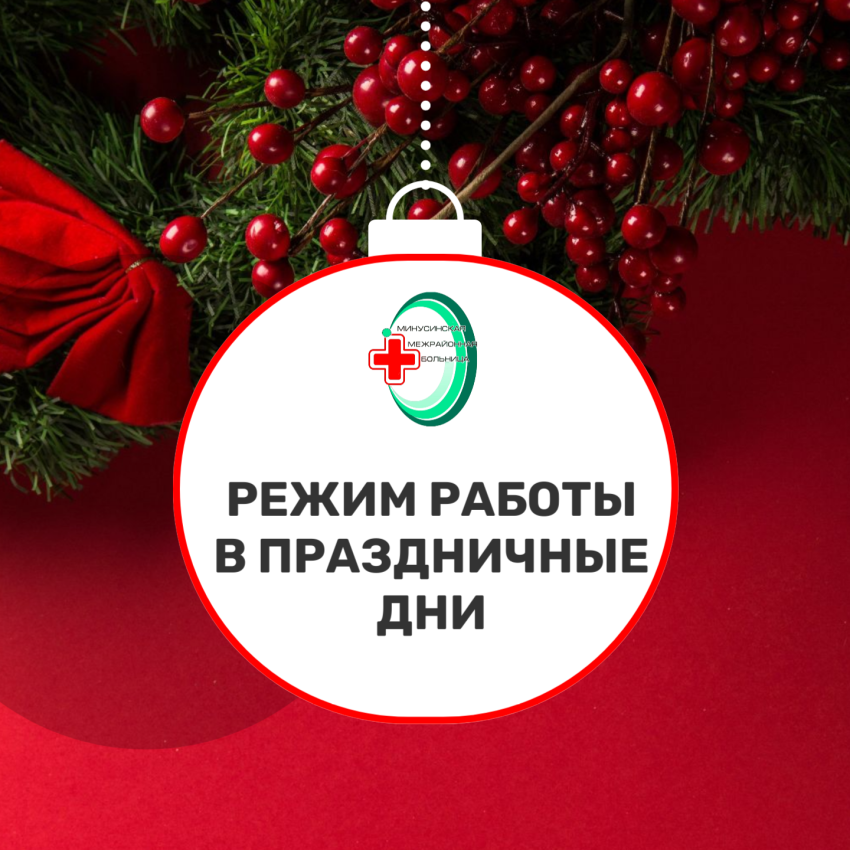 Станция скорой мед. помощи : Круглосуточно Стационары : Круглосуточно Детская поликлиника : 30.12.2024, 02.01.2025, 04.01.2025, 06.01.2025, 08.01.2025 с 08:00 до 14:00 Взрослая поликлиника : 30.12.2024, 02.01.2025,
