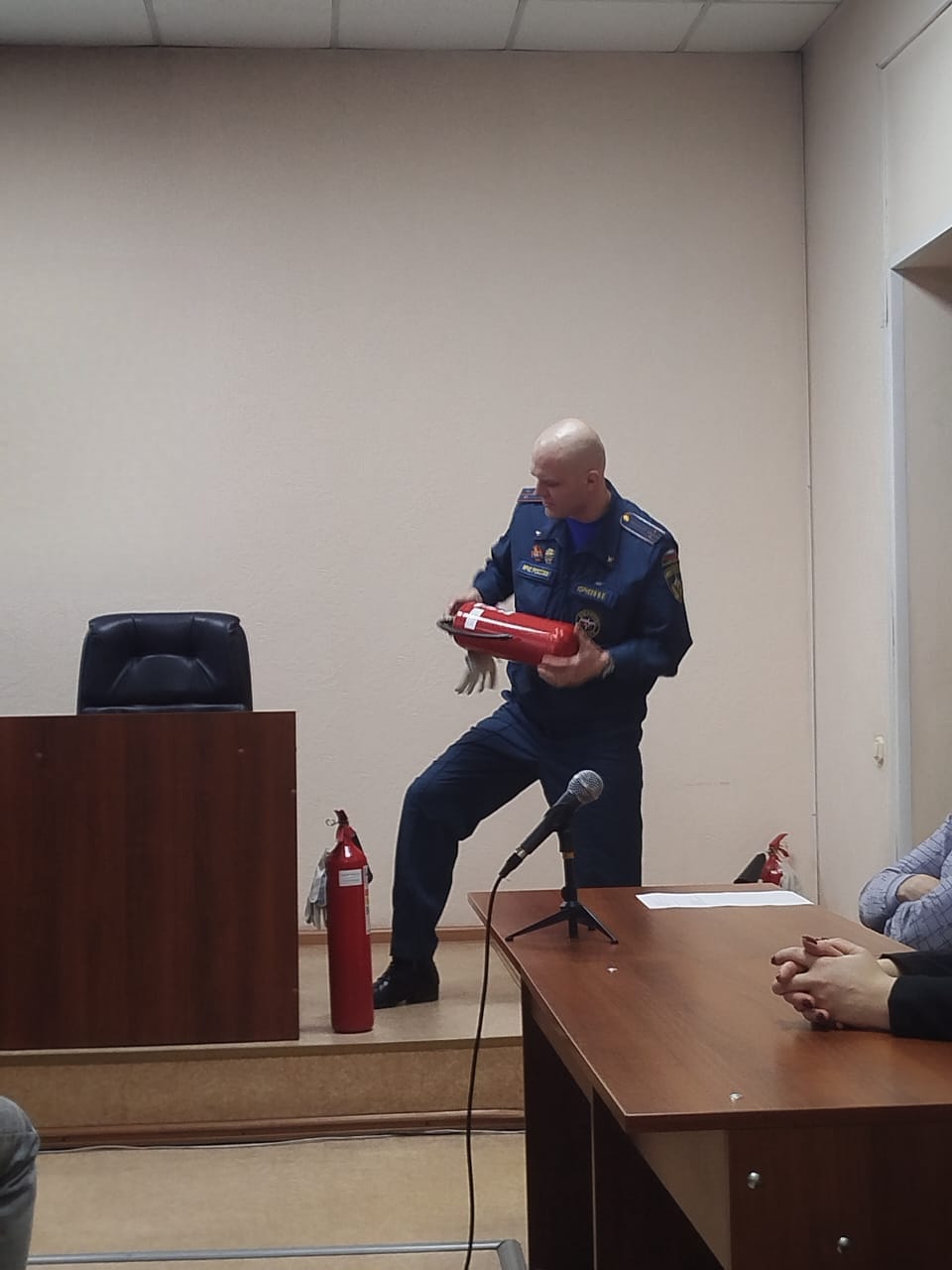 Владимир Евгеньевич рассказал государственным гражданским служащим суда о видах очагов возгораний, первичных средствах пожаротушения, типах огнетушителей, их устройстве и правилах применения.Последние новости