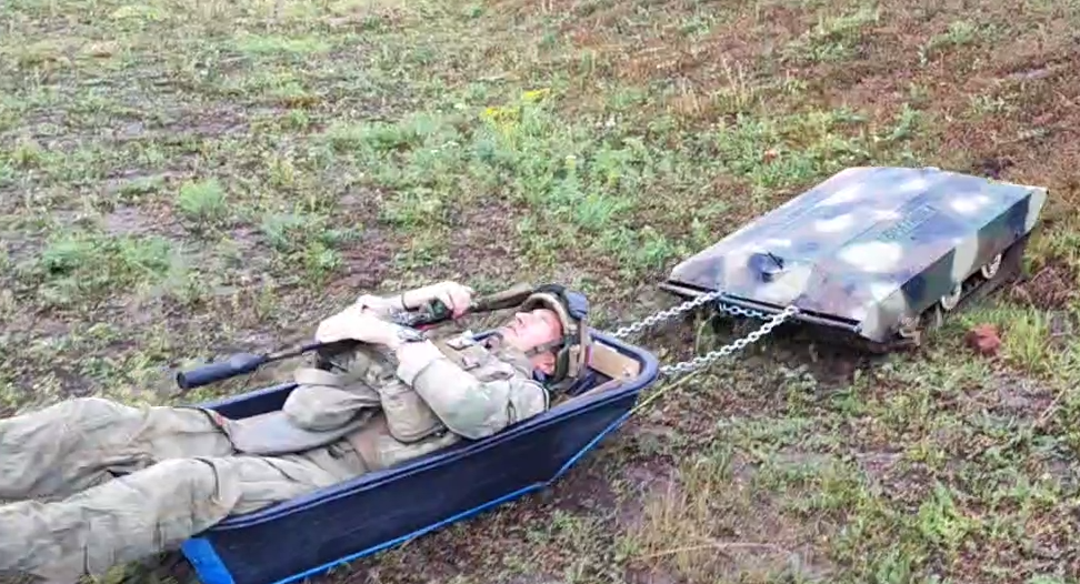 "Данный аппарат (мини-трактор) можно использовать в реальных боевых действиях и в различных ситуациях, например, разминирование и минирование площадей, штурм позиций противника с установленным на него ПК, ПТУР и так далее".