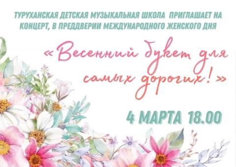 Туруханская детская музыкальная школа приглашает на концерт «Весенний букет для самых дорогих»