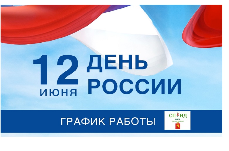 Уважаемые пациенты, поздравляем Вас с наступающим праздником – Днем России и информируем о том , что изменится график работы Краевого Центра СПИД: